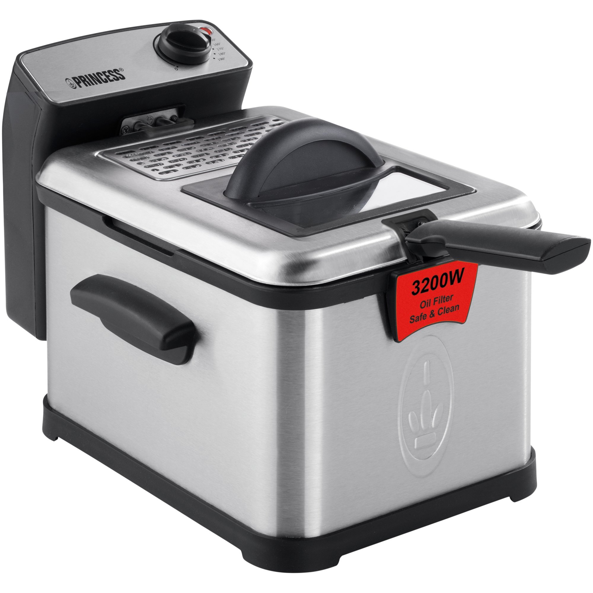 Princess 183001 Edelstahl Fritteuse mit 3 Liter Fassungsvermögen, Ölfilter und Kaltzonenfunktion, entnehmbarer Edelstahl-Behältereinsatz, Silber 01.183001.050