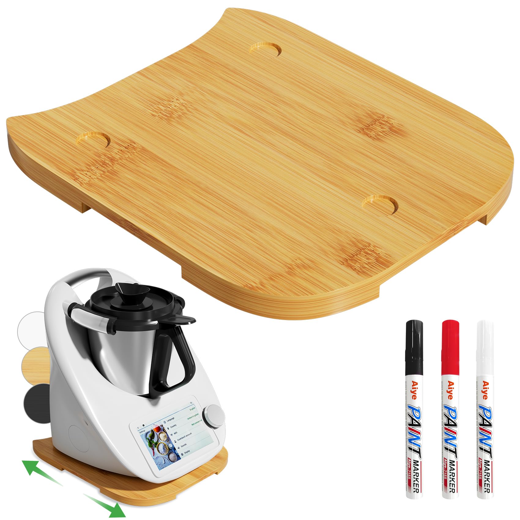 Sealong Gleitbrett für Thermomix TM5/TM6 inkl. 3 Farbige Filzstifte (für DIY-Beschriftung) – Extra Dickes Brett für Thermomix mit Rollen für Müheloses Bewegen – Kompatibel mit TM6/TM5 – Aus Massivholz