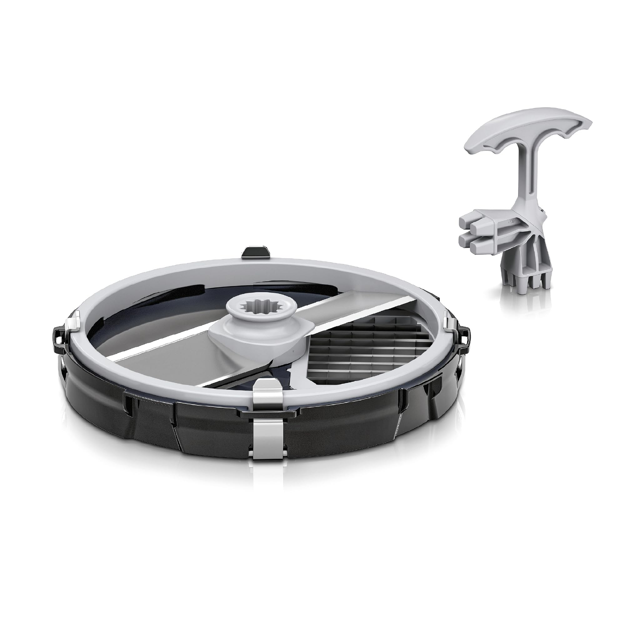 Bosch Zubehör MUZS68CC, Würfelschneider, gleichmäßige Würfel, Würfeleinsatz 9 mm, inklusive Gitterreiniger, für Küchenmaschine Serie 6, Serie 8, schwarz/edelstahl