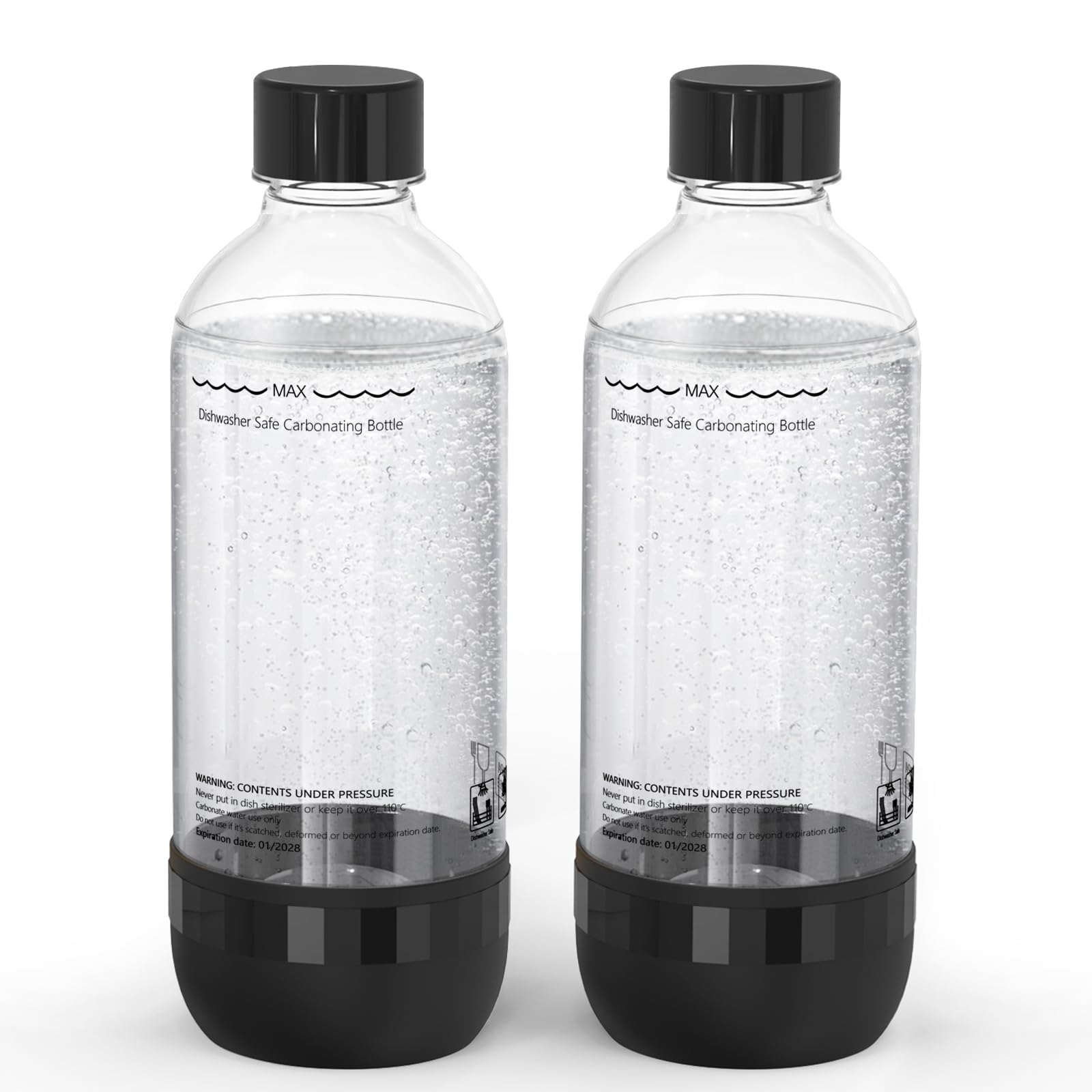 Mycket Soda Maker Flaschen, 2 Spülmaschinenfeste Flaschen für Wassersprudler, Kohlensäureflaschen, 1L BPA Frei Wiederverwendbare PET Sprudelwasserflaschen für Soda Maschine, Schwarz(2pcs)