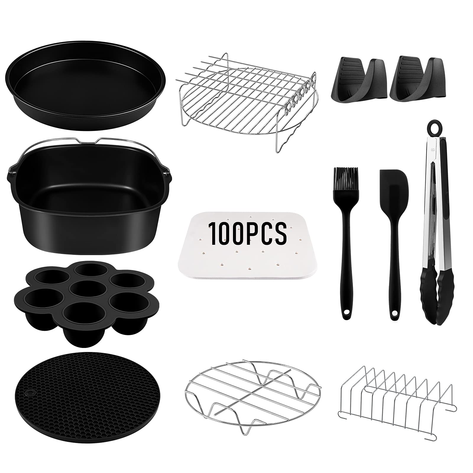 Airfryer xxl zubehör quadrat heißluftfritteuse zubehör, heissluft fritteuse zubehör passt für COSORI Philips Ninja 5,5L 6L 6,2L air fryer, heissluftfritteuse zubehör, Schwarz