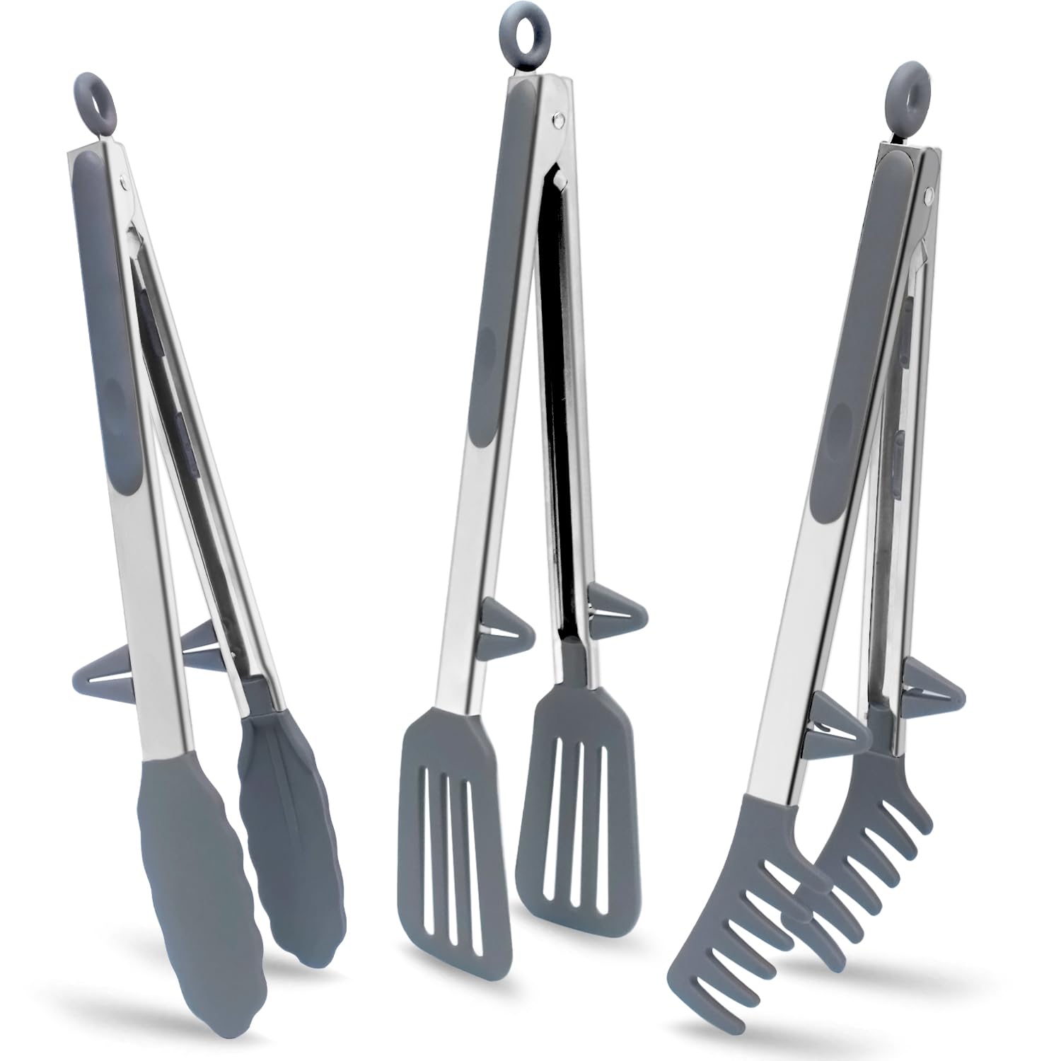 Edelstahl Küchen zangen mit Silikonspitzen, 3 Stück 30cm Grillzange Kochzange für Salat, Kochen, Grillen, Grau
