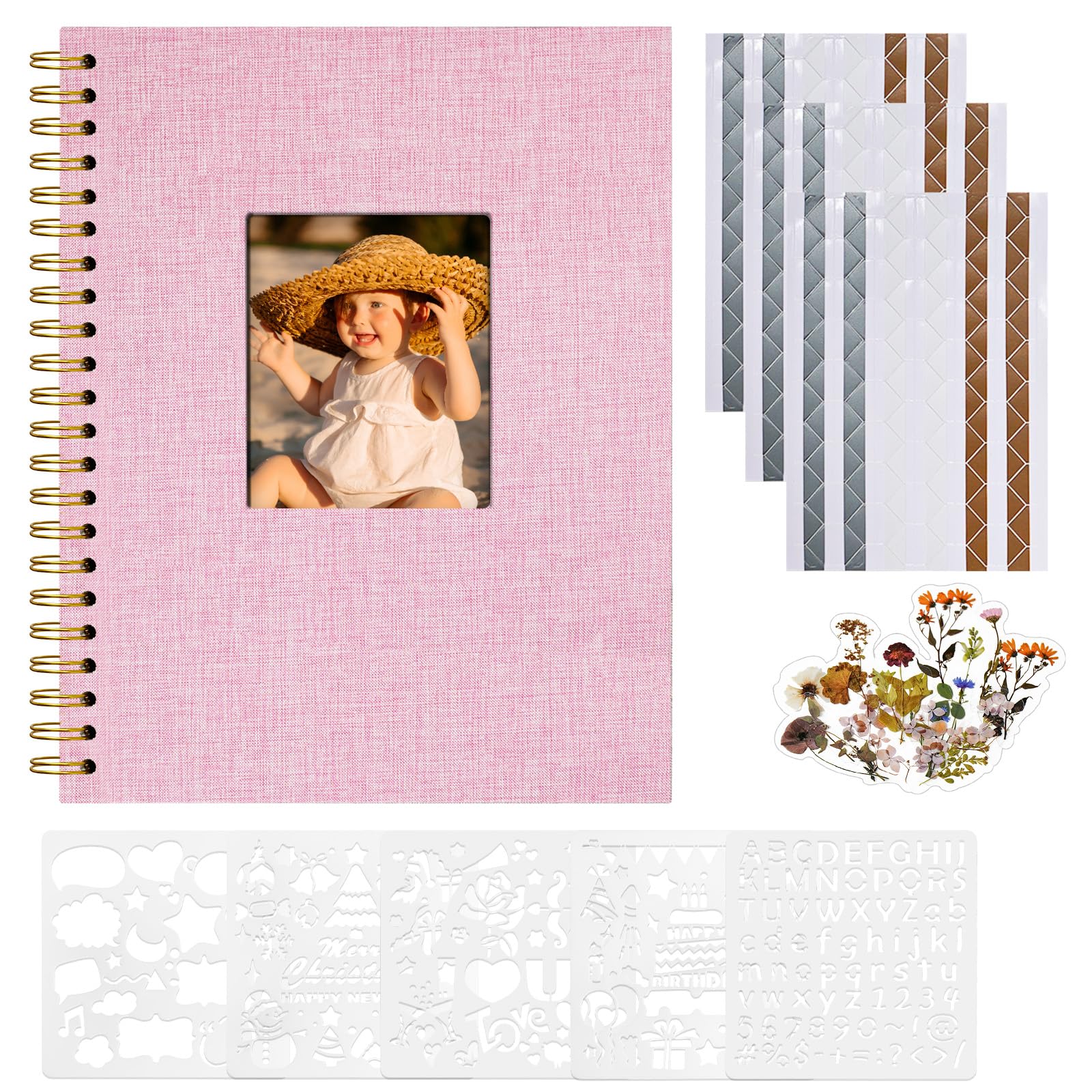 Vienrose Fotoalbum zum Selbstgestalten 28,5 x 20,5 cm, Leinen Fotoalbum mit 40 Weißen Seiten, Leeres Kraftpapier, DIY Scrapbook Spiralalbum Set für Babys, Familien, Hochzeiten, Jahrestag, Rosa