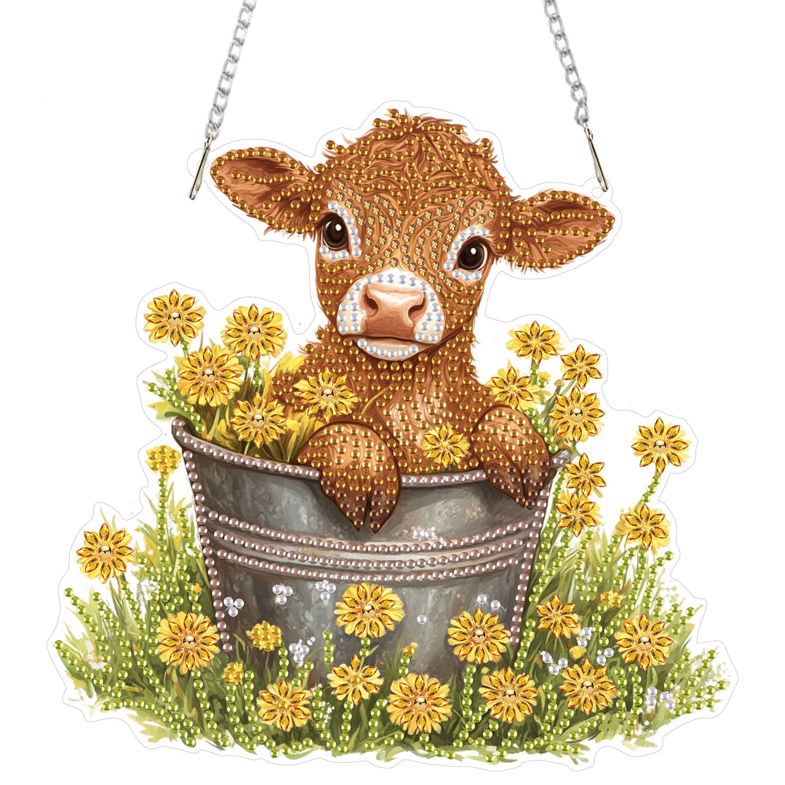 DOMROM Rinder Diamond Art Painting Anhänger, Blumen Diamond Painting Fensterbilder anhänger, Diamond Painting Hängende Ornament für Kinder Erwachsene Diamant Malerei Basteln Tür Fenster Deko