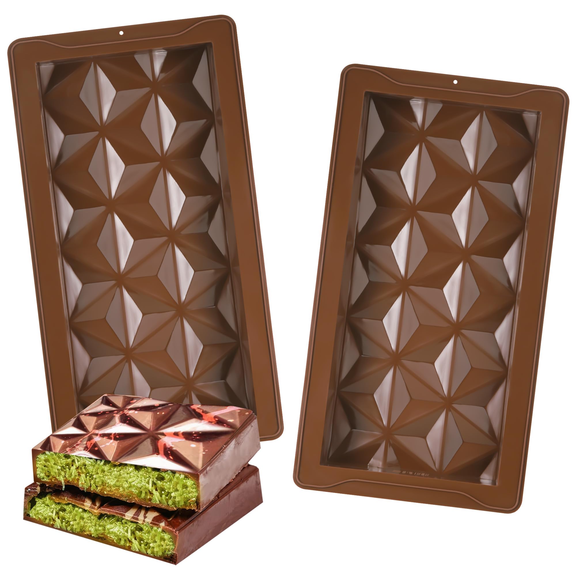 Hejo 2 Stück Schokoladenform Silikon Tief, Silikonform Schokolade Form, Mehrweg Dicke Schokoladentafel Form für Schoko Praline Süßigkeiten