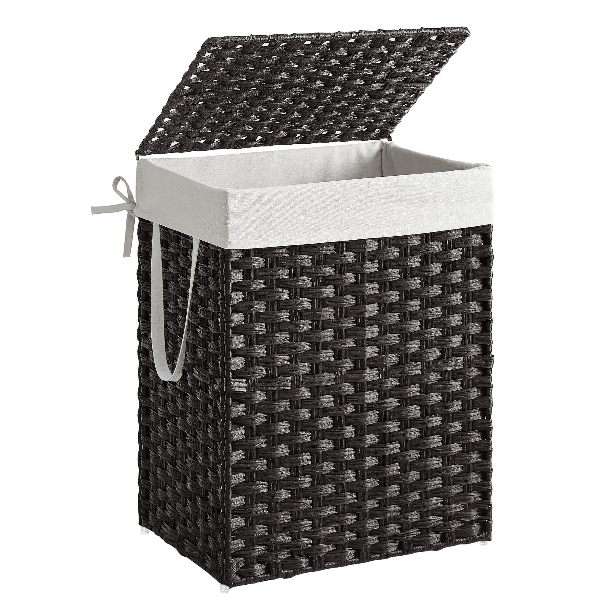 SONGMICS Wäschekorb, Wäschesammler 90 L, Wäschebox aus synthetischem Rattan, mit Deckel und Griffen, geflochten, faltbar, herausnehmbarer Wäschesack, tintenschwarz LCB51BK