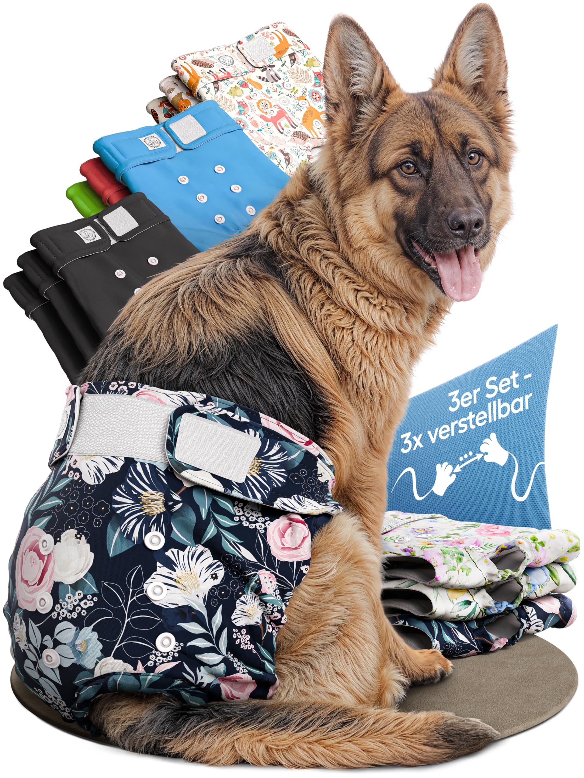 HUND IST KÖNIG Hundewindeln für Hündinnen (3 Stück) – Hochabsorbierende Läufigkeitshose für Hündinnen mit 3-Fach Justierung – Umweltfreundliche Hunde Windeln, Hundehöschen Läufigkeit & Inkontinenz