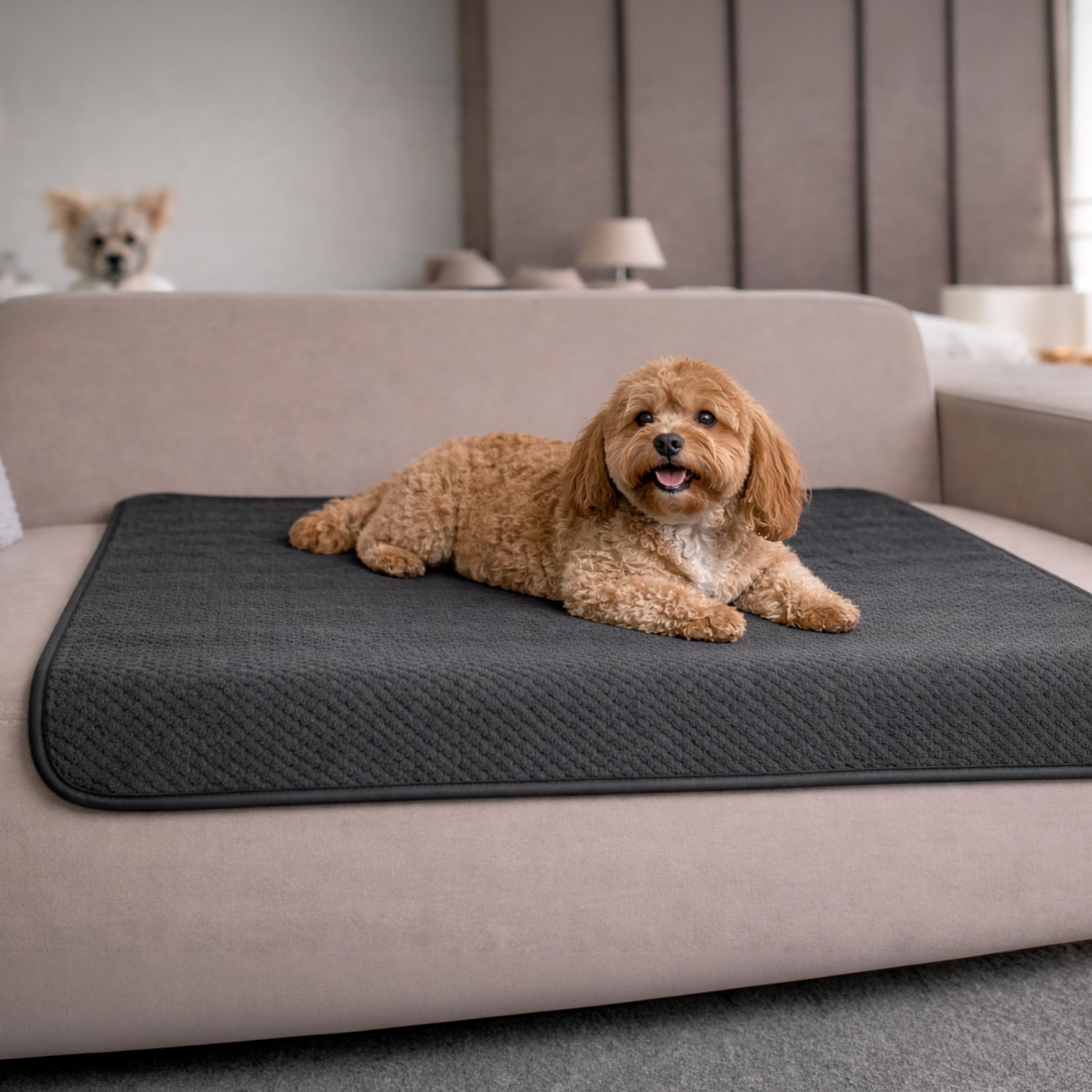 Dreamzie Hundedecke Wasserdicht Bett, Auto, Outdoor 80x100cm – Reversible und Maschinenwaschbar Hundedecke Sofa aus Sherpa Fleece – Dunkelgrau