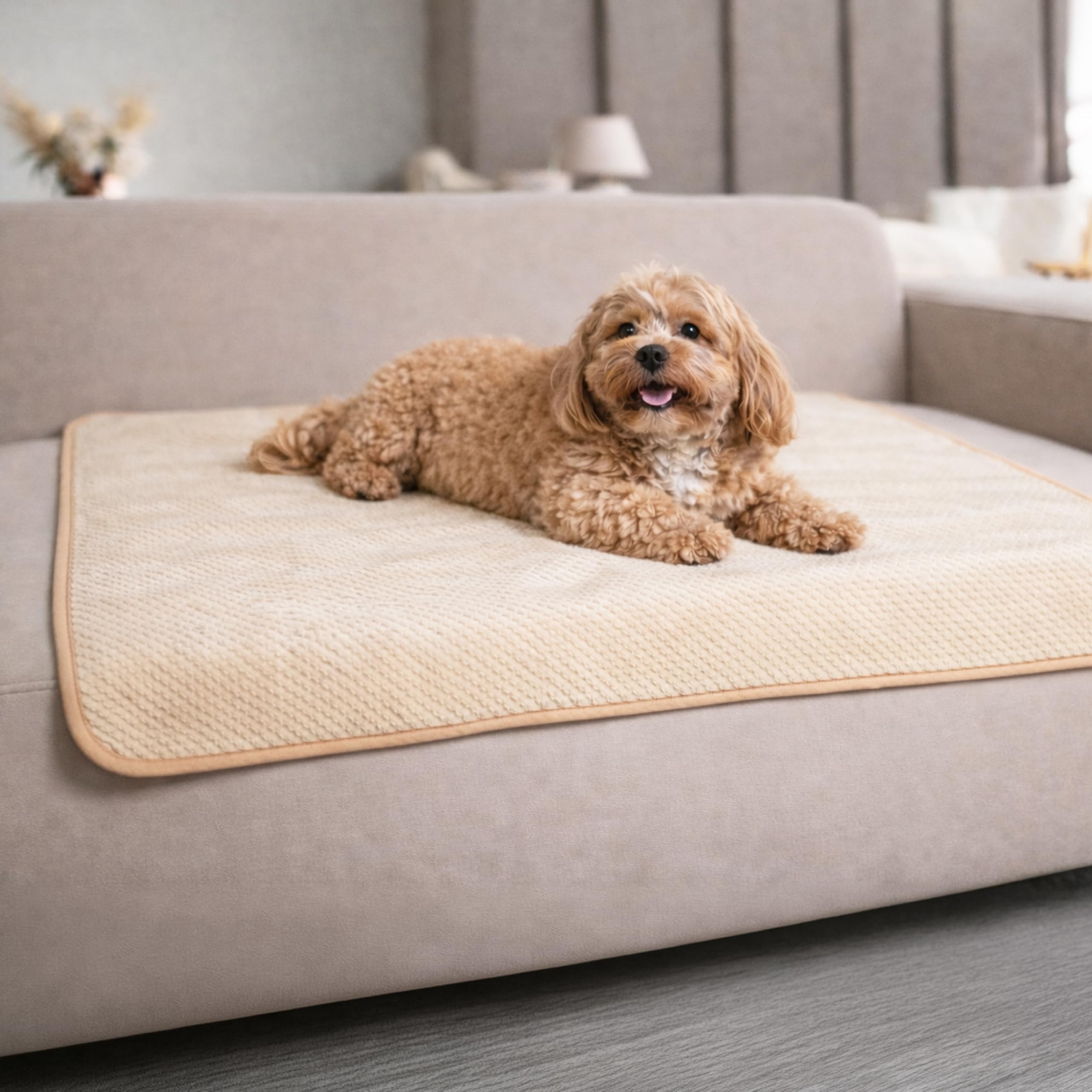 Dreamzie Hundedecke Wasserdicht Bett, Auto, Outdoor 80x100cm – Reversible und Maschinenwaschbar Hundedecke Sofa aus Sherpa Fleece – Beige
