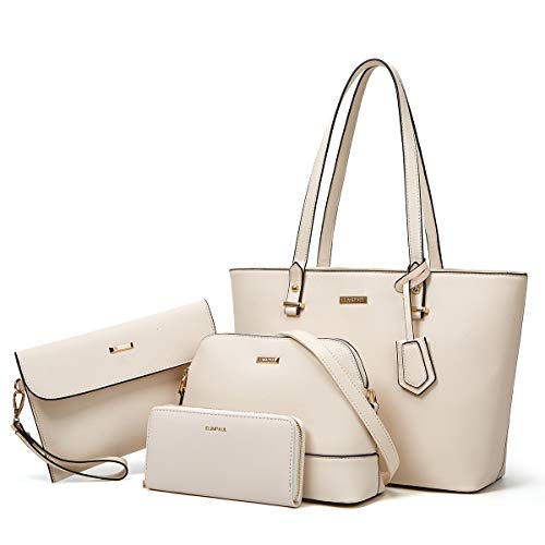 YTL Damen Handtasche Tote Shopper Groß Schultertasche Umhängetasche Geldbörse Kartenhalter Tasche 4-teiliges Set für Büro Schule Einkauf Reise Geschenk Beige