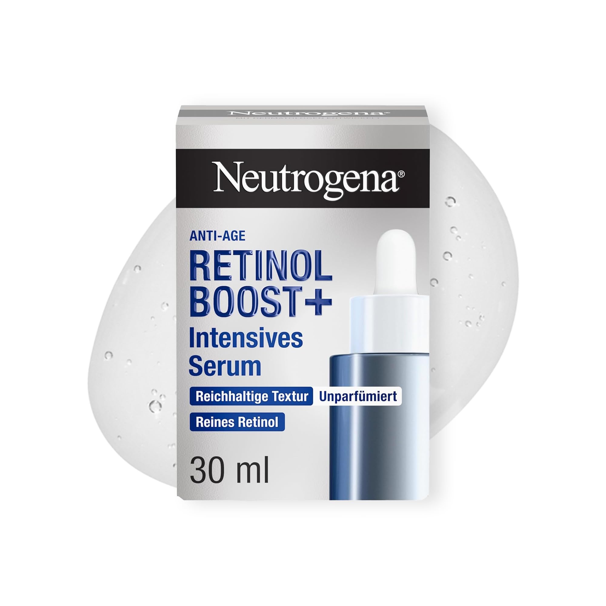Neutrogena Retinol Boost+ Intensives Serum 30 ml, Anti-Aging Serum mit Retinol und Hyaluron, unparfümiert, gegen Falten und Pigmentflecken, für straffere, jünger aussehende Haut