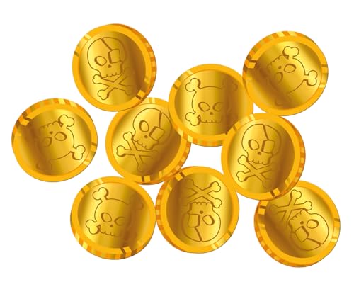 Folat 27480 Piraten Deko Kinder Geburtstag – Goldmünzen Piraten Edelsteine – Pirate Party – 50 Münzen – Münzkonfetti Accessoires für Piratenschatz Piratenparty Mädchen Junge