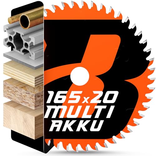BAUBECK Akku Sägeblatt 165×20 inkl. 16mm Reduzierring – Multi Material Feinschnitt – Kreissägeblatt 165 Holz, Handkreissägeblatt 165×20 Alu, Metall uvm. – Akku Sägeblatt 165mm